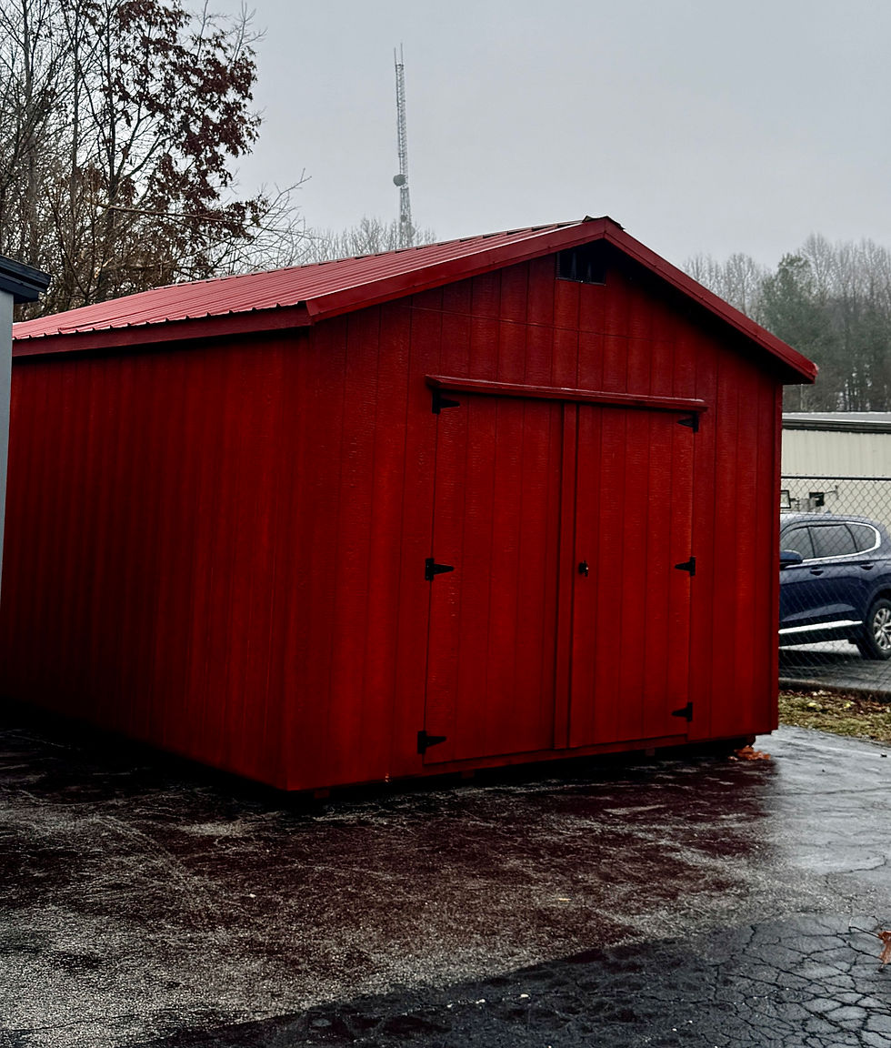 The Barnyard is a high quality wood option. Their line includes both high wall barn, low barn, and cottage style buildings. They come a variety of colors. With your choice of metal or shingle roof.